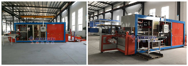 5. 自動厚板吸塑機。工藝步驟:吸盤上料、加熱、真空吸塑成型、自動取料、雕刻機分切。