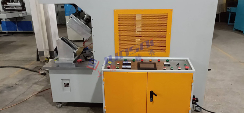 將生產所需生產的材料放入到指定位置,設備就可以自行運轉,防護罩下降,高頻焊接頭下降,冷卻上升。